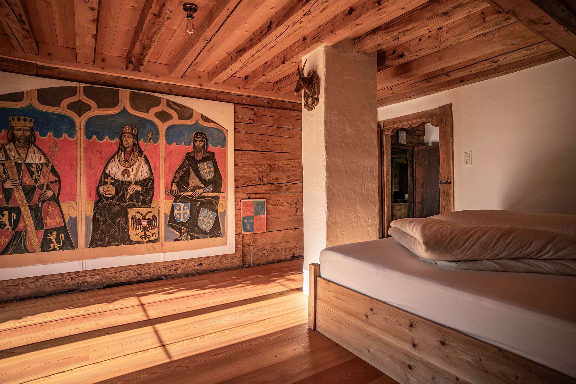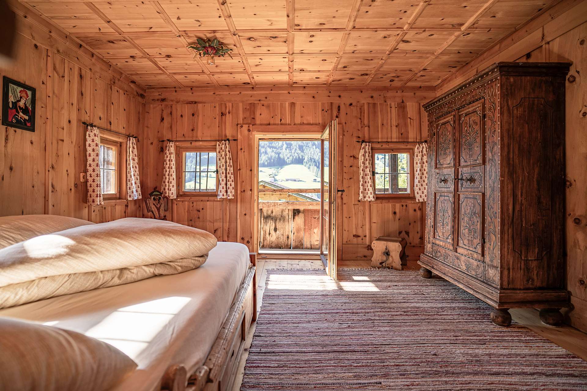 In der Hunters Lodge erwarten Sie vier liebevoll eingerichtete Schlafzimmer, die Ihnen nach einem erlebnisreichen Tag im Alpbachtal einen erholsamen Rückzugsort bieten. Jedes Zimmer strahlt seinen eigenen Charme aus und ist mit bequemen Betten, Nachttischen und Kleiderschränken ausgestattet, um Ihren Schlafkomfort zu gewährleisten. Hier können Sie zur Ruhe kommen und neue Energie für die nächsten Urlaubstage tanken.