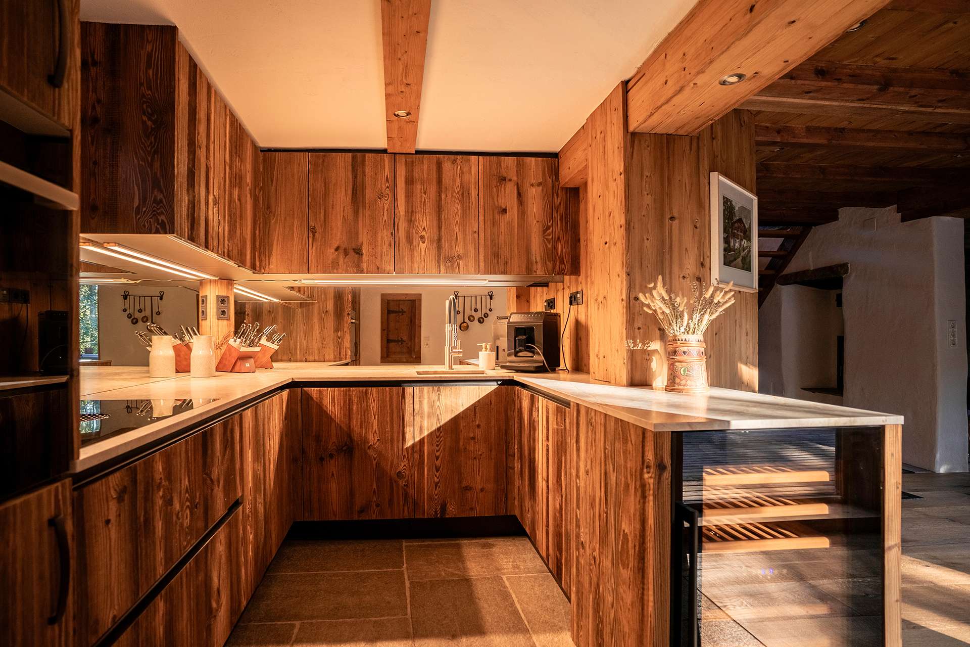 Im Herzen der Hunters Lodge erwartet Sie ein einladender Wohnbereich, der mit seinem gemütlichen Ambiente zum Verweilen einlädt. Hier können Sie nach einem aktiven Tag in den Bergen entspannen und die gemeinsame Zeit genießen. Angrenzend befindet sich der großzügige Essbereich, der ausreichend Platz für gesellige Mahlzeiten bietet. Die voll ausgestattete Küche lässt keine Wünsche offen und ermöglicht es Ihnen, Ihre Lieblingsgerichte zuzubereiten und den Urlaub ganz nach Ihren Vorstellungen zu gestalten.